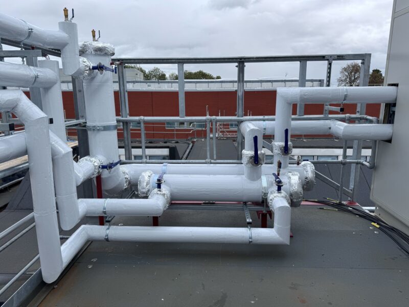 Recent site activity focused on the safe lifting and installation of major MEP components. Heater batteries were fitted to provide precise thermal regulation within the air-handling system, while new ductwork was installed to ensure clinical-grade ventilation across maternity spaces. Alongside this, a supply framework was put in place to provide robust structural support for the HVAC network. Together, these elements are key to improving air quality, thermal comfort, and energy efficiency, while meeting the high performance standards expected in healthcare environments.